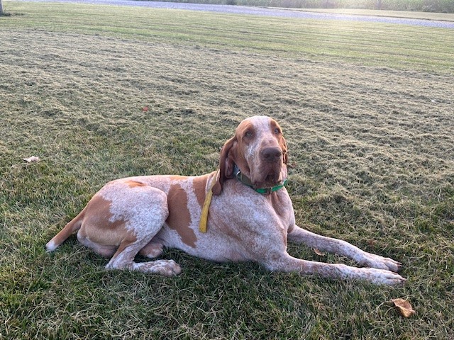- Mia comes from Lumpy’s Kennel, parents are Riverside’s “Quigley” and Whiskey Hills “Mae Capone”. Mia joined our family in January of 2022. Mia was chosen based on the hunting reputation of the sire; hunting ability was a key attribute we were looking for.