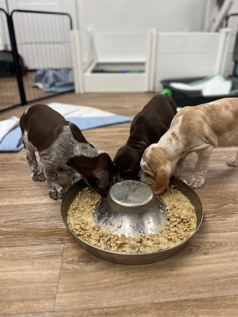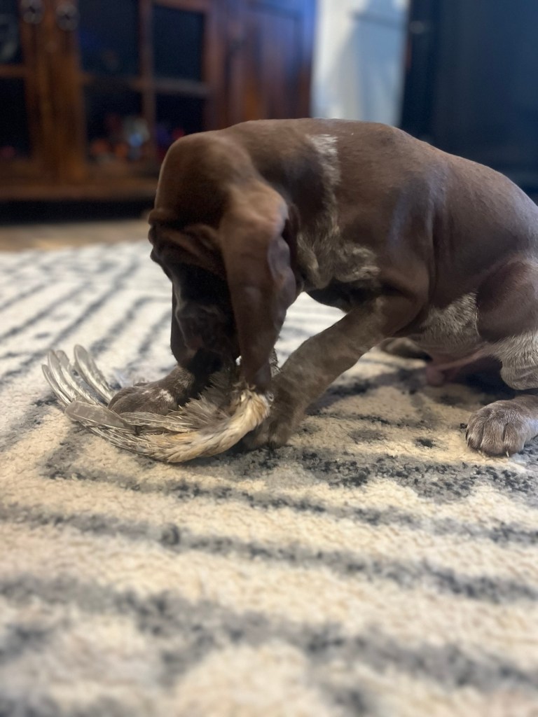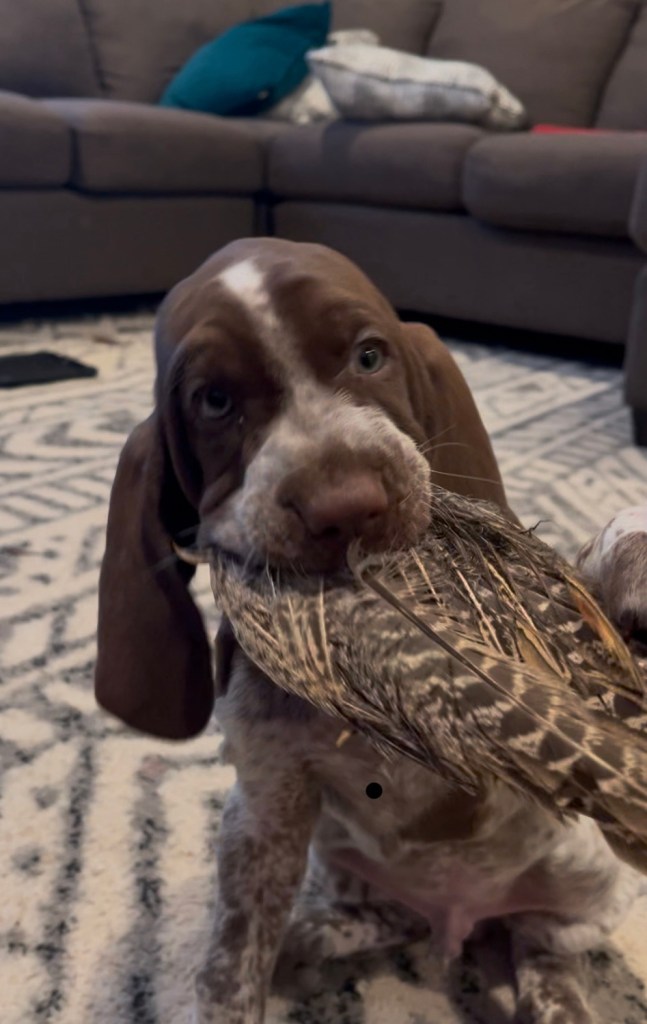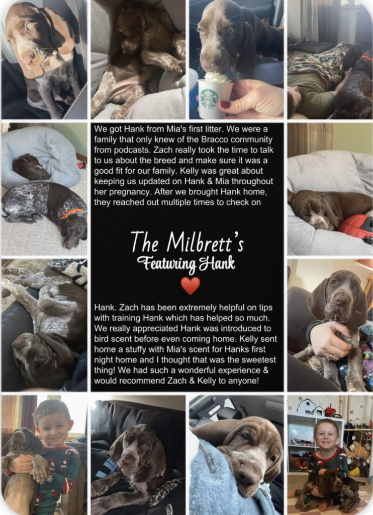 Zach and Kelly encouraged us to come to their house and meet them and Mia before the puppies were born, and we are so glad we did! They were extremely accommodating and very patient in answering all of our many questions. We immediately clicked and knew that Deep River Braccos was the breeder we wanted to go with. They communicated throughout the whole process with updates and photos every step of the way. After the puppies were born, once again they opened their home to us for many puppy visits and social hours (Sorry if we overstayed our welcome lol). We were highly impressed with how Zach and Kelly raised this litter and can’t thank them enough for all their hard work and dedication. We are thrilled we found new friends and are looking forward to running and hunting our dogs together in the near future!